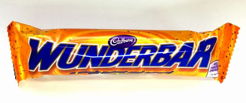 Gefüllte Vollmilchschokolade mit Waffel und Nugatcremefüllung. "Die wahrscheinlich längste Praline der Welt".