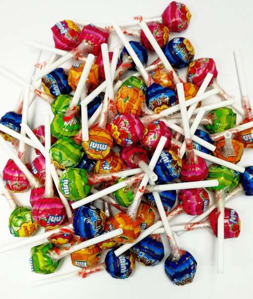 Die Mini Lolipop von Chupa Chups passen in jeden Mund. Mit Cola-, Apfel-, Orange-, Erdbeeraroma.