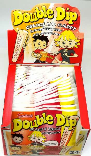 Lutscherstäbchen, Schleckstengel zum dippen in Schleckpulver mit Orangen- oder Kirschgeschmack