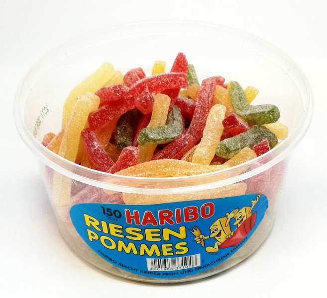 Haribo Pasta Basta, die „saure“ Haribo Leckerei. Kandierte Fruchtgummistreifen in der fruchtigen