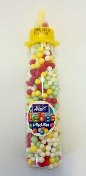 Babyfläschen mit Traubenzuckerperlen in verschiedenen Geschmacksrichtungen. Grösse 15cm.