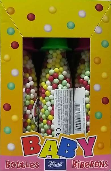 Traubenzuckerdrops in einem Babyfläschchen in verschiedenen Geschmacksrichtungen