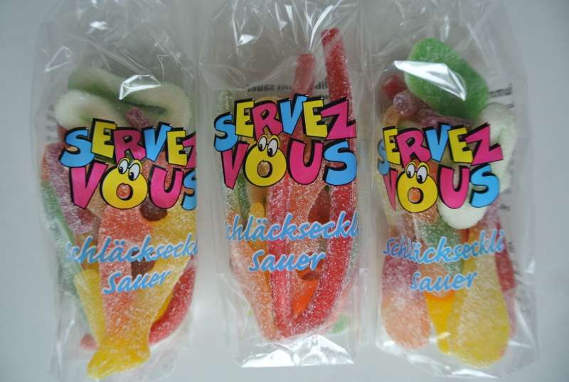 Saure Mischung mit verschiedenen Fruchtgummi`s. MaBu Schlecksäckli, ideal für Kinderpartys, Give away oder den Bürosnack zwischendurch.