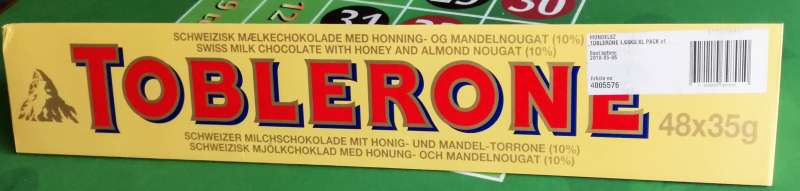 Die originelle Verpackung beinhaltet aber 48 kleine Tobleronen (einzeln verpackt) a 35g.